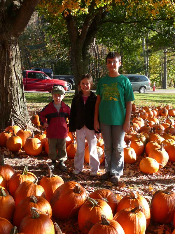 | On the way back we stopped at a pumpkin patch. Alex wasn't happy, because he wanted to get a second pumpkin, so he would have one he could carry himself. |
