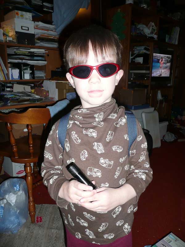 | Halloween! We had a bit of trouble, as Alex decided at the last minute that he should be a detective instead, but we managed to talk him into going with his original choice. |