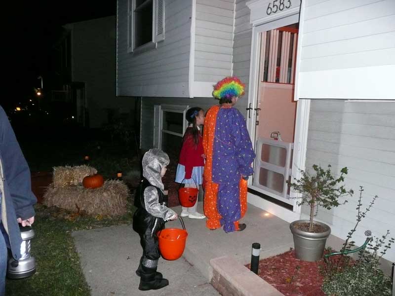 Trick-or-treating at a familiar house. |